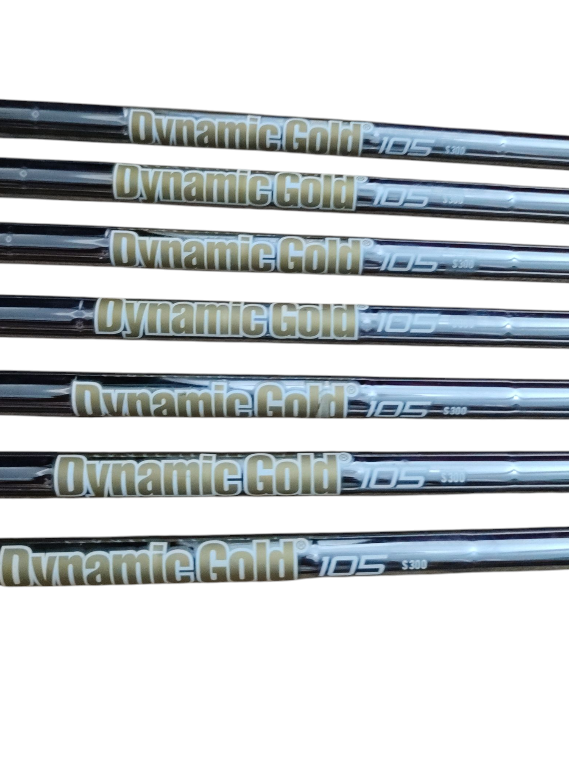 Dynamic Gold shafts, 105 S300, set of 7 shafts, 4-p. Cp2 Warp Midsize grip, Pre-Owned.